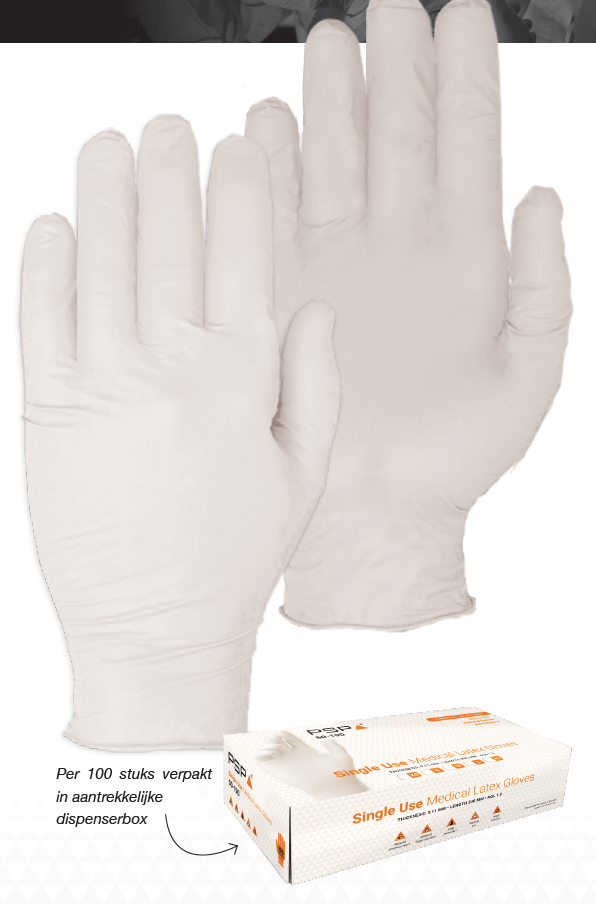 The PSP 50-190 Single Use Medical Latex is a glove made for single use. This preformed glove adheres well to the skin and has a very high dexterity due to a thickness of only 0.11 mm.